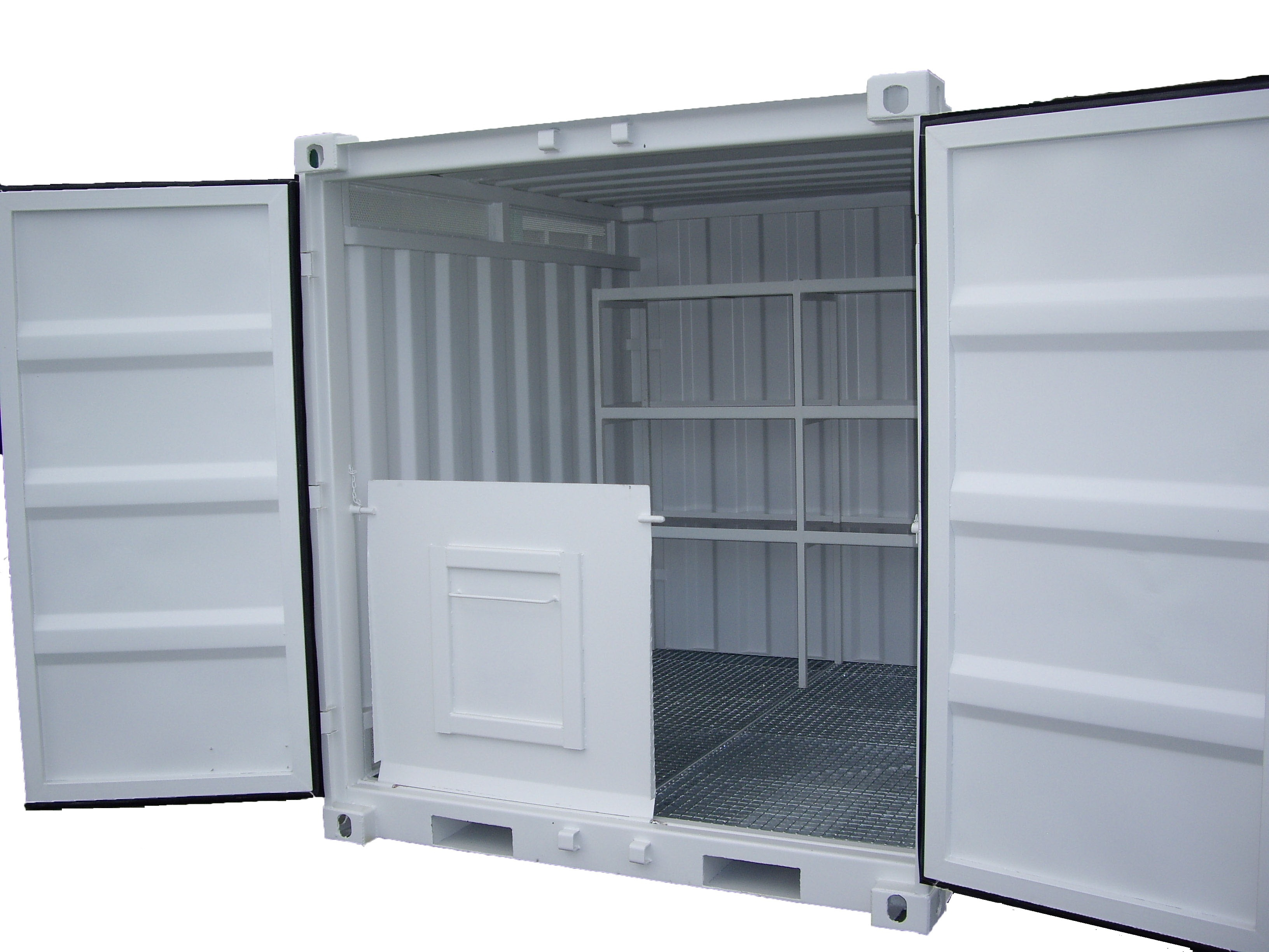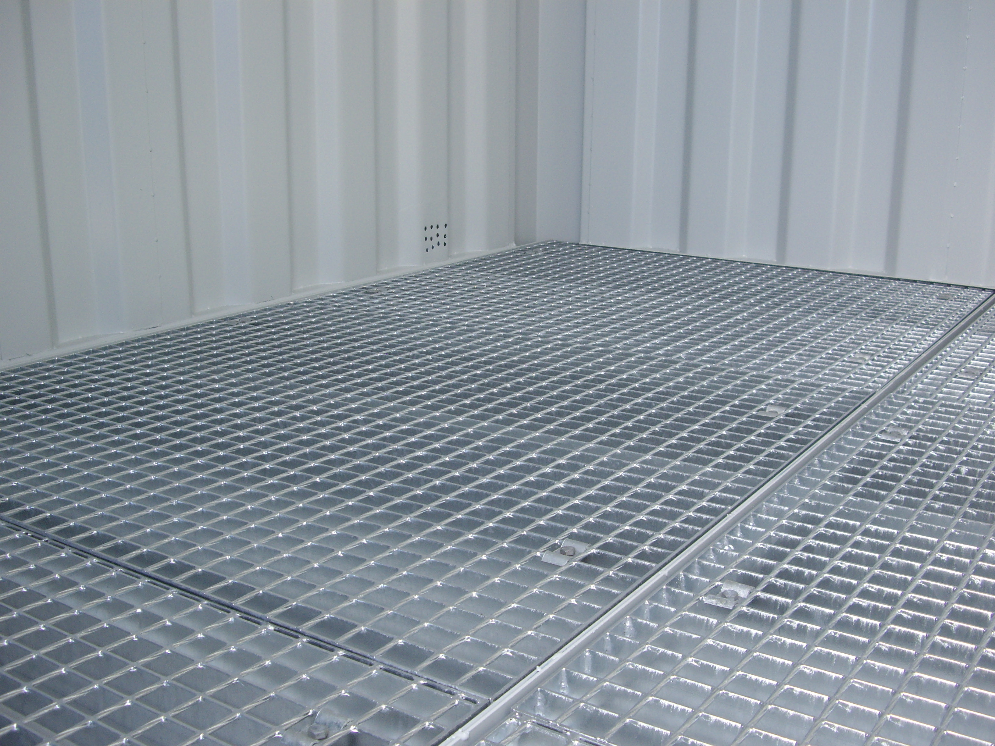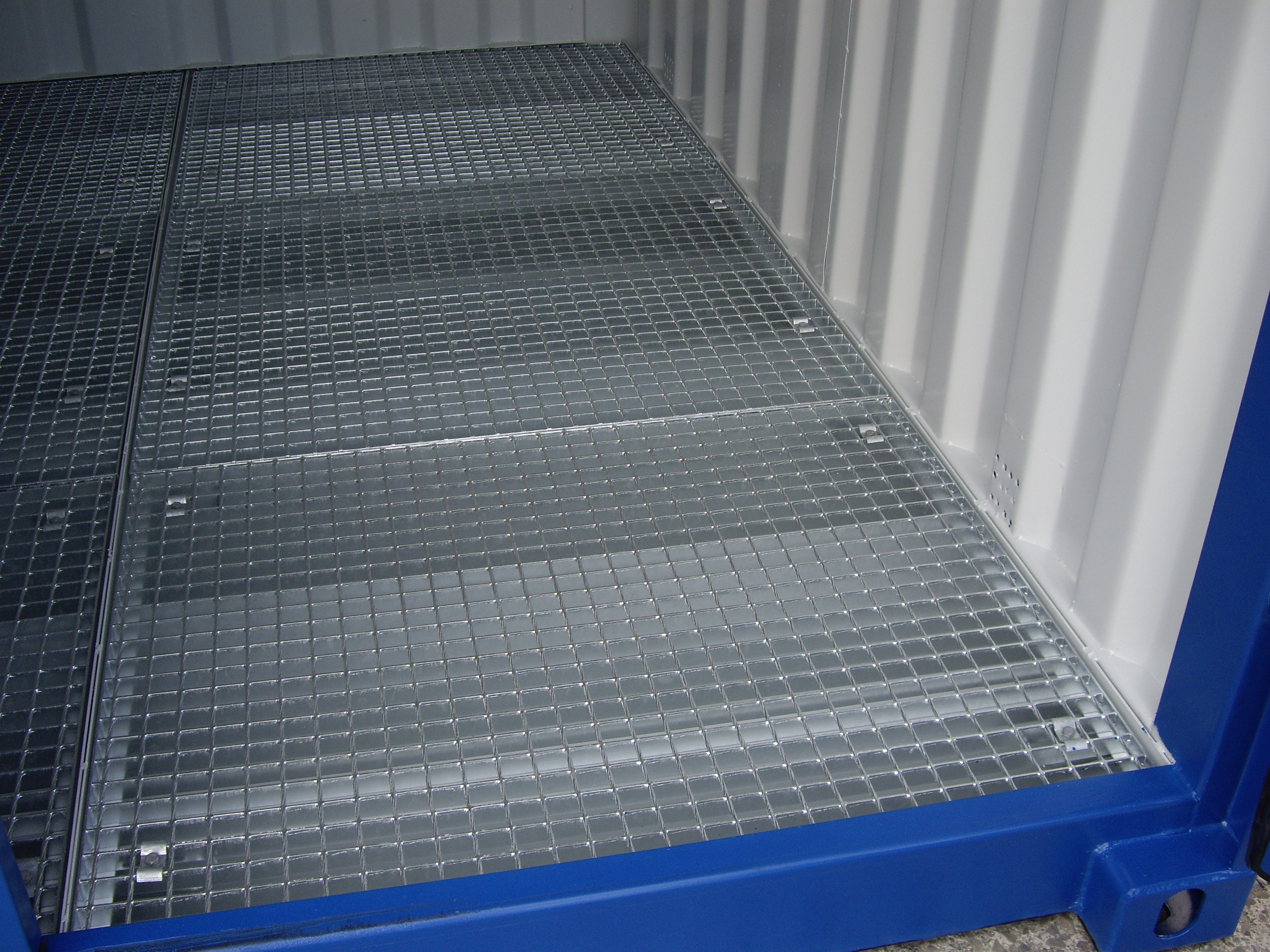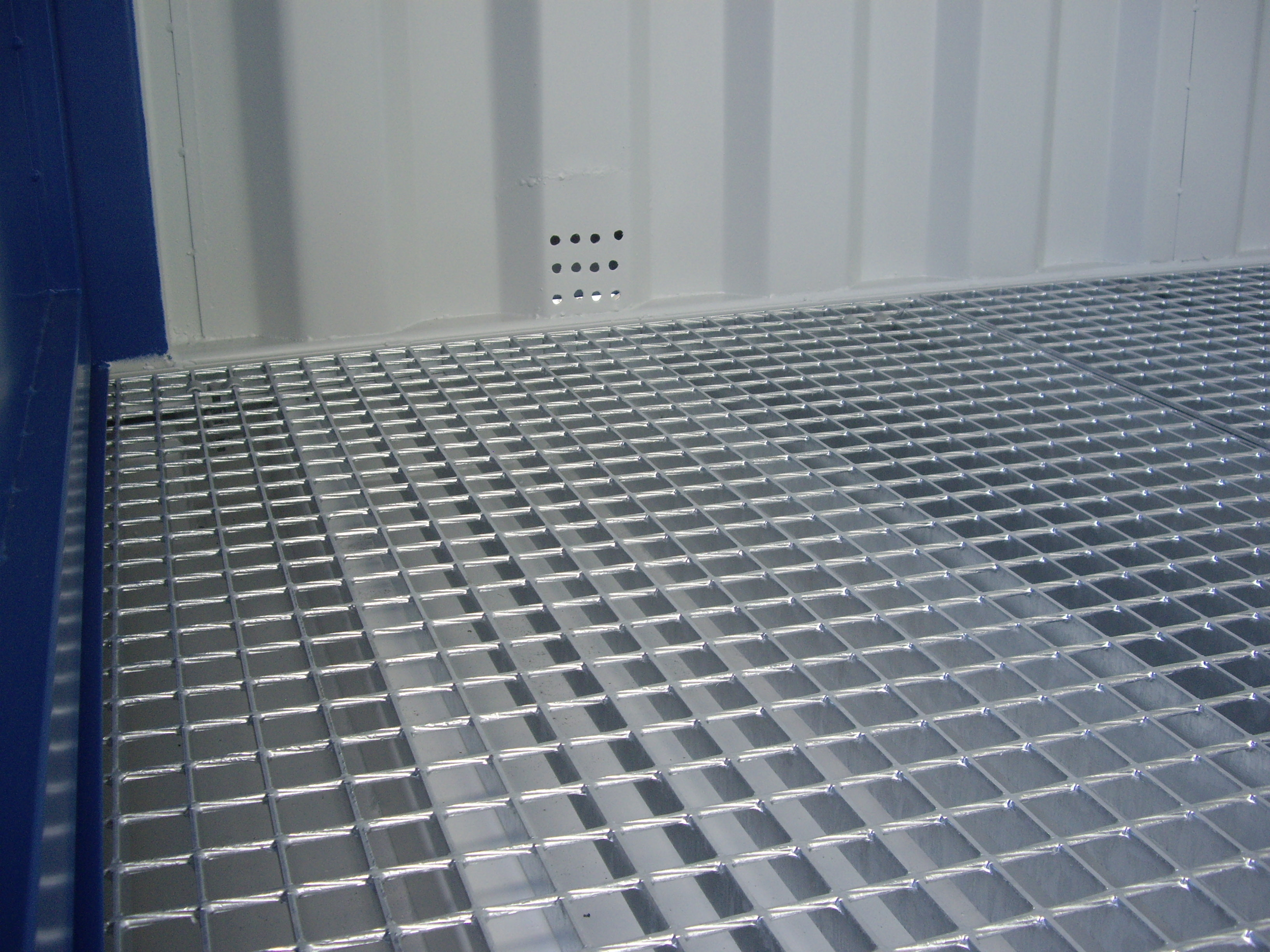 - Podlahu kontajnera tvorí záchytná olejová vaňa s pozinkovaným roštom